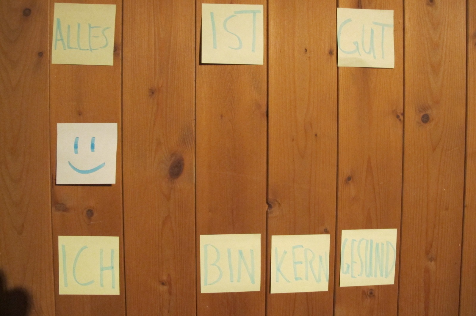 DIESE GELBEN POST ITS HAT eine erkrankte Person aus dem Bauernhaus AN DIE WAND GEKLEBT - UM SICH SELBER MUT ZU MACHEN....als die Person ein halbes Jahr bettlägerig war...und immer kränker wurde !