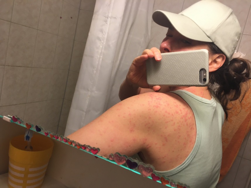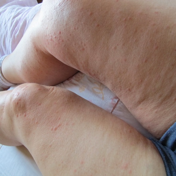 Was ist das? In der Wohnung war der gesamte Körper von schmerzenden roten Stellen und Punken übersät. Heizöltoxine? Wohntoxine? Naphtalin aus Böden? Schimmel aus alten Wasserschäden? Legionellen? ...Was? Sehr wichtig ist das ganze Haus zu beproben und alle in Frage kommenden Dinge zu untersuchen. Auch etwaige abgeschlossene Behälter eigener Quellen und dort verwendete Chemikalien nur zur "Wasserenthärtung" (?) und abgeschlossene Räume mit etwaigen alten einwandigen Heizöltanks.