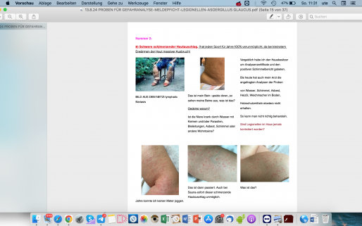 Wenn in einem Haus nach Auszug der erkankten Mieter nur ohne Information derselben eine UV-Behandlungsanlage für Wasser eingebaut wird (und die erfahren es nur durch Zufall) - dabei kann genau diese Beprobung im Zuge der neuen Wasserhygiene den behandelnden Aerzten wichtige Informationen geben. Es könnten Legionellen gewesen sein. Wie viele, wo und Nachbeprobung sollten Standard sein, damit die Hausbewohner sicher vor der Legionärskrankheit sind.