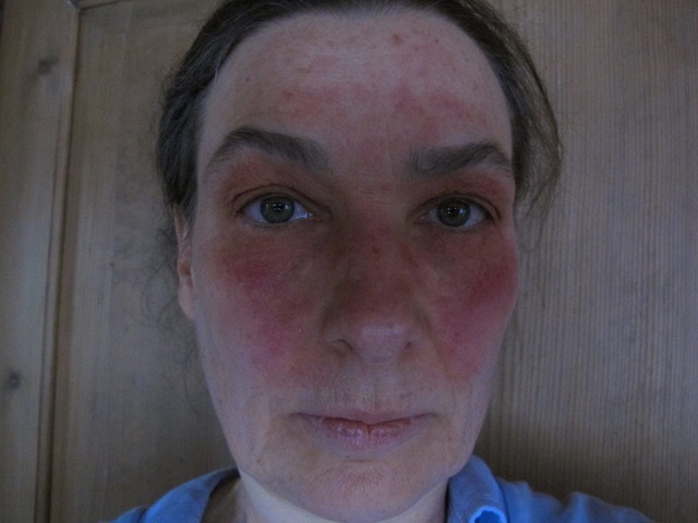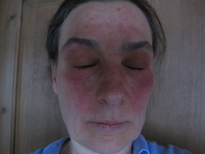 So sah die Haut der Mutter im Gesicht vorher aus - und so in der Wohnung bei der im Keller darunter Heizöltanks offen (!) waren und der Schimmel Keim Aspergillus Glaucus an Gegenständen aus dem Keller gefunden wurde: